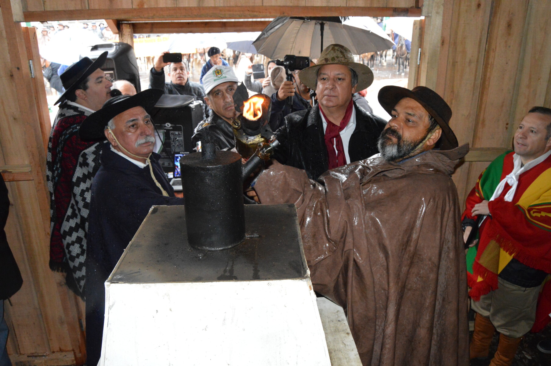Foi aberta oficialmente na manhã desta quinta-feira (14), as festividades da Semana Farroupilha 2017 em Sant’Ana do Livramento. Em solenidade na Praça General Osório, o Grupo Santanense de Cavalgadas apresentou a centelha da Chama Crioula, trazida de Mostardas, em uma peregrinação pelo Estado que durou 15 dias. Na sede do galpão onde ocorreram as atividades da Semana Farroupilha, autoridades e cavalarianos puderam acompanhar o acendimento da Chama Crioula.