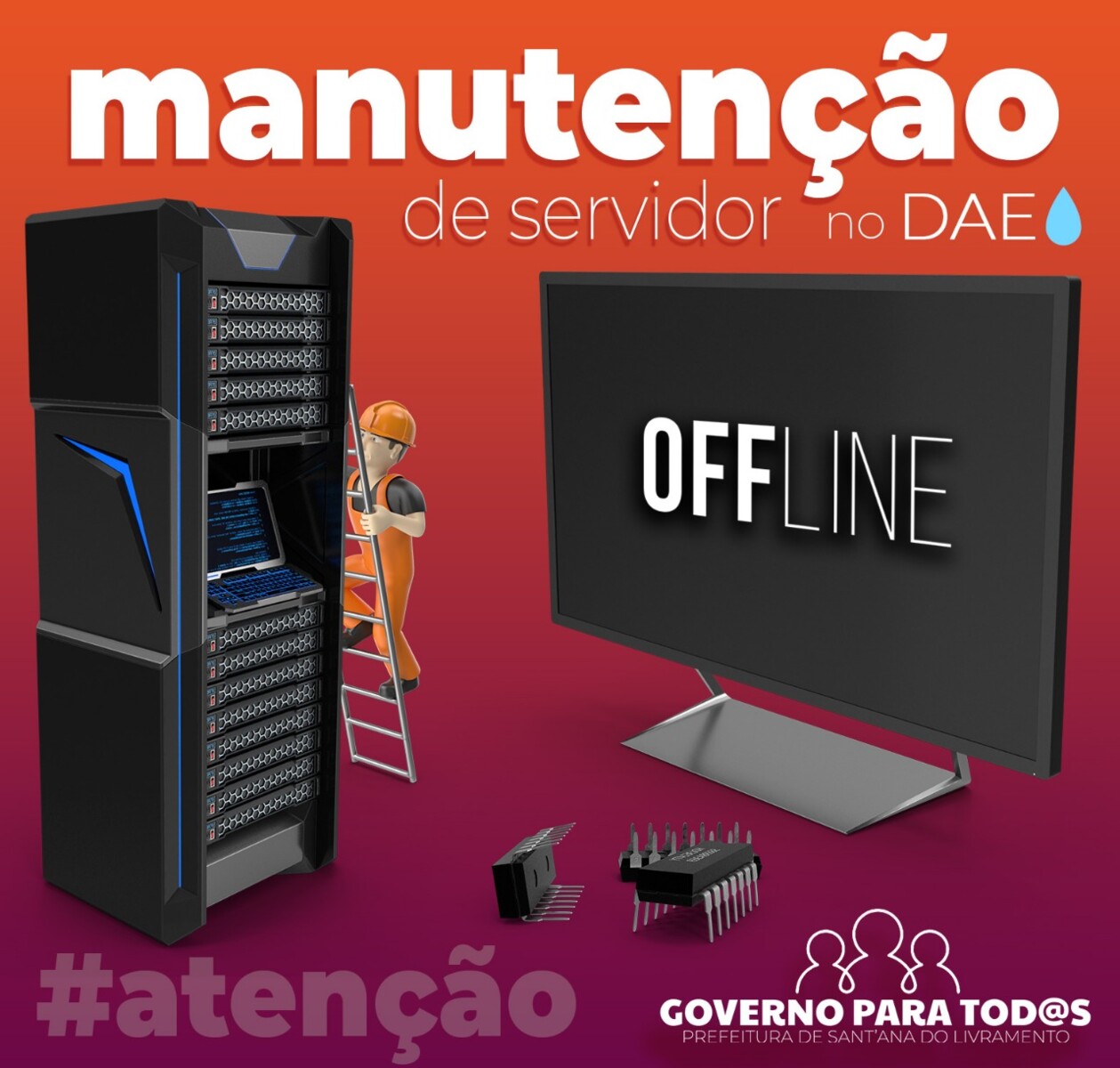O Departamento de Água e Esgoto informa que devido a uma pane elétrica, o servidor de rede/firewall teve o seu sistema de inicialização afetado, requerendo manutenção corretiva. Com isso, o sistema do DAE encontra-se "FORA DO AR (OFFLINE)", bem como o site, impossibilitando arrecadação e serviços como: emissão de 2ª via de contas, e também documentos relacionados. A previsão do término da manutenção é de 24h para que o servidor esteja novamente operacional.