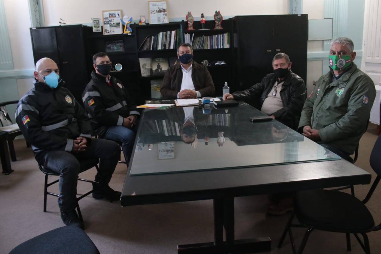 Na manhã desta quinta-feira (09), o prefeito municipal Solimar Ico Charopen, acompanhado dos secretários Ricardo Dutra, Lauro Binsfeld e do coordenador da Defesa Civil do Município, Luiz Mansilha, recebeu a visita do coordenador Regional de Proteção e Defesa Civil do Estado, Major Rinaldo da Silva Castro, o qual solicitou a agenda a fim de informar oficialmente ao prefeito que o Município já conta com uma Coordenadoria Adjunta de Defesa Civil, instalada junto ao quartel dos Bombeiros e sob a coordenação do 1º Tenente Alex Sandro dos Santos Ribas.