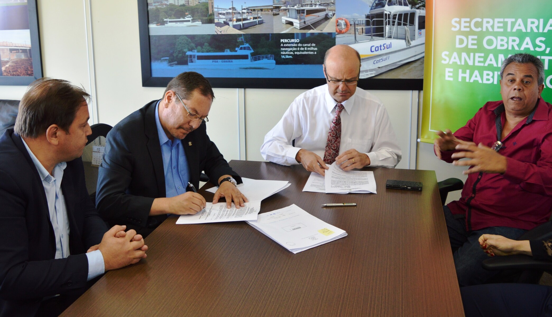 Nesta quinta-feira (14), o Prefeito Glauber Lima participou de uma reunião na Secretaria de Obras, Saneamento e Habitação do Estado, junto ao Secretário da Pasta, Gerson Burmann; ao Diretor Administrativo, Marcirio da Silva; e ao Vereador Germano Camacho (PTB).