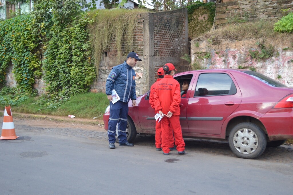 A Secretaria Municipal de Trânsito, Transportes e Mobilidade Urbana realizou, dia 31 de maio, uma blitz educativa referente ao Movimento Maio Amarelo, que tem a proposta de chamar a atenção da sociedade para o alto índice de mortes e feridos no trânsito. A ação ocorreu em frente ao quartel do 10º Comando Regional de Bombeiros e contou com a participação dos alunos do Projeto Bombeiro Mirim, acompanhados do Soldado Antonio Ribeiro, e os agentes de trânsito Luciano Mansilha, Jeferson Oliveira e Luiz Carrets.