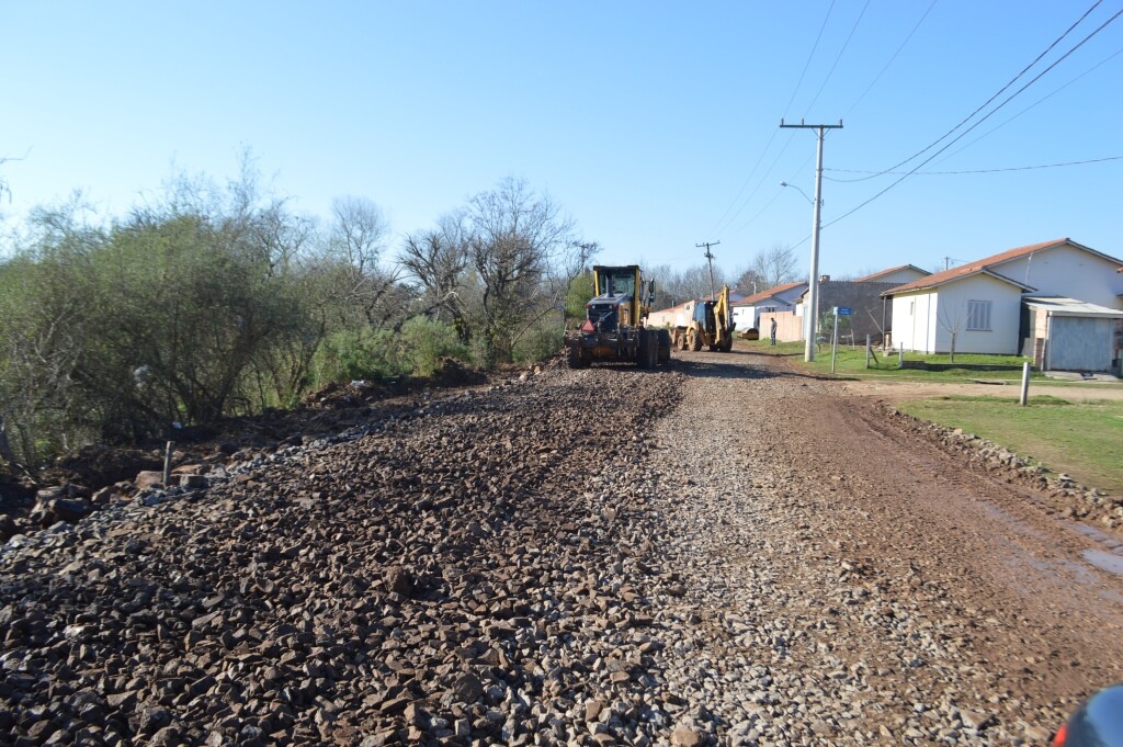 A Secretaria de Obras também está atuando com frentes no interior do município, abrangendo as regiões do Assentamento Coqueiro, Santa Rita, Coxilha de Santo Inácio, Camelos, Moirões e Carcávio – em direção a São Leandro.