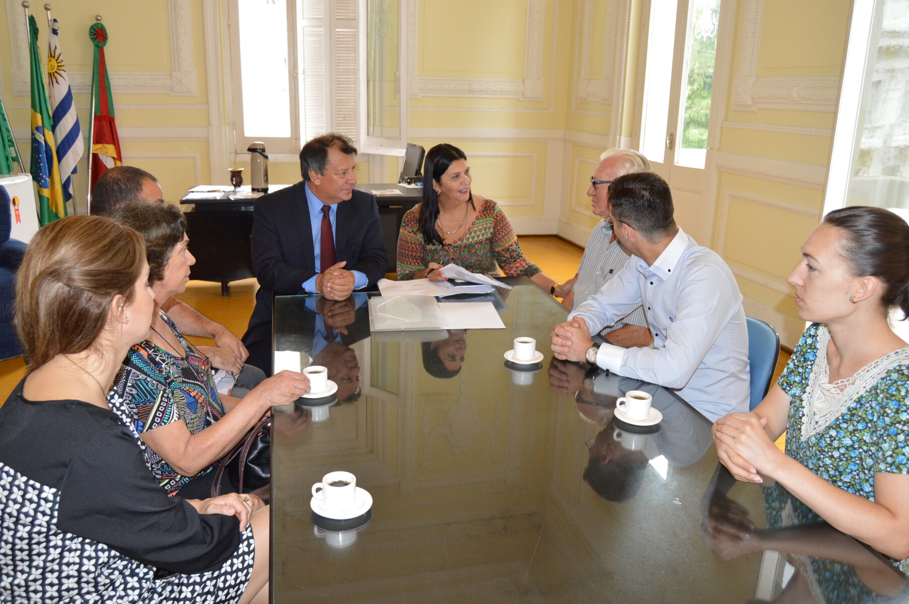 Na reunião de entrega dos projetos estavam presentes também Glauber Loss, acompanhando Simone; Mayane Niederauer, acompanhando Arno; bem como o secretário de Desenvolvimento Econômico, Calico Grisolia e o servidor da Sala, Thomaz Guilherme.
