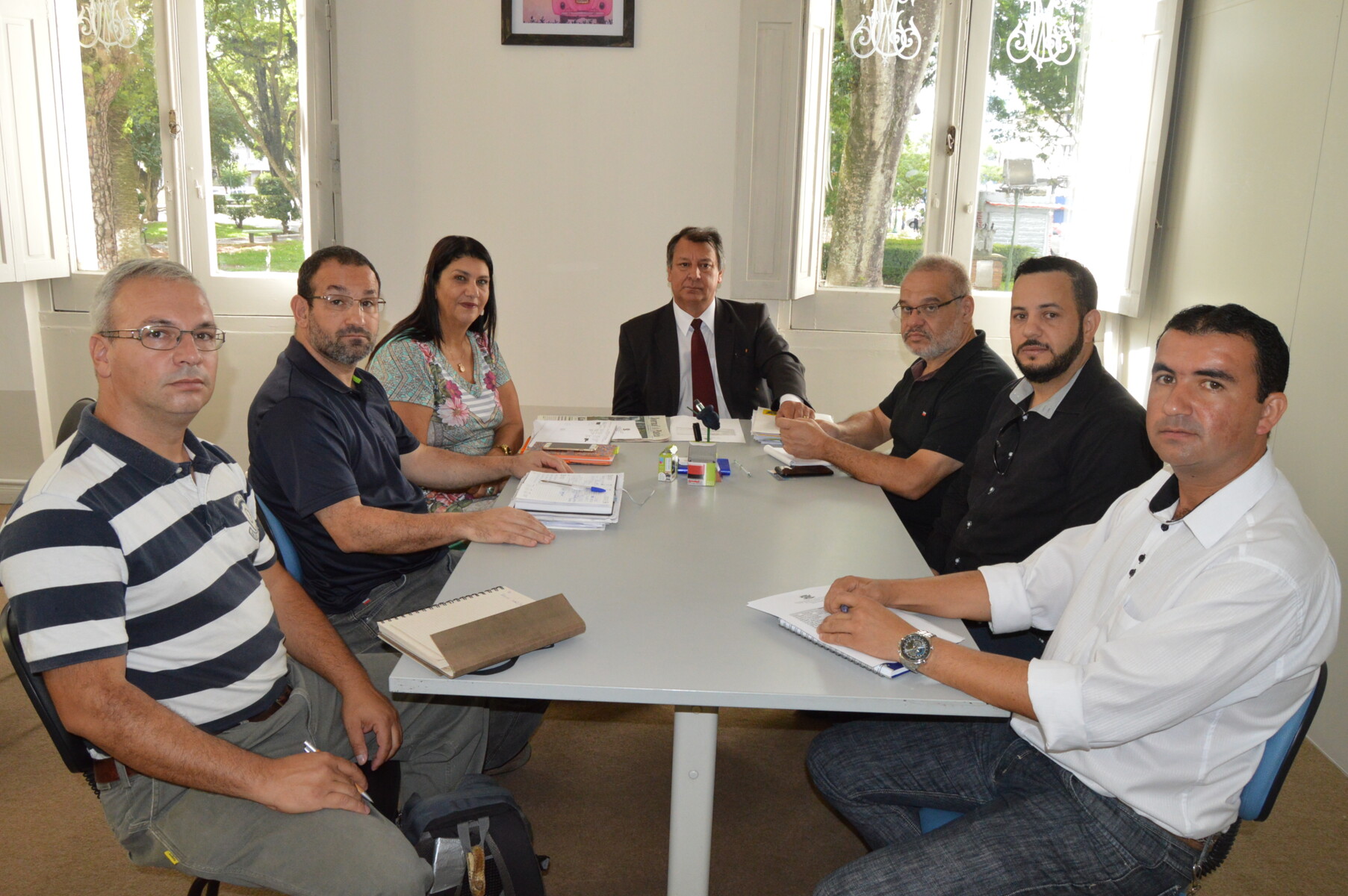 Durante toda a manhã desta sexta-feira (23) o prefeito Ico Charopen e a vice-prefeita Mari Machado atenderam na Sala do Investidor. Na oportunidade da primeira agenda os mandatários receberam o presidente do sindicato dos transportes de Sant'Ana do Livramento. Estavam presentes também o secretário de Desenvolvimento, Calico Grisolia, o técnico da Secretaria de Planejamento, engenheiro Miguel Pereira, e o técnico da Secretaria de Agricultura, Alex Gomes.