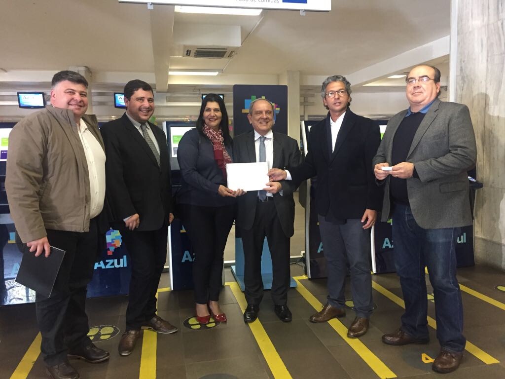 Vice Prefeita faz a entrega da pesquisa de interesse pelo transporte aéreo ao presidente da empresa Azul