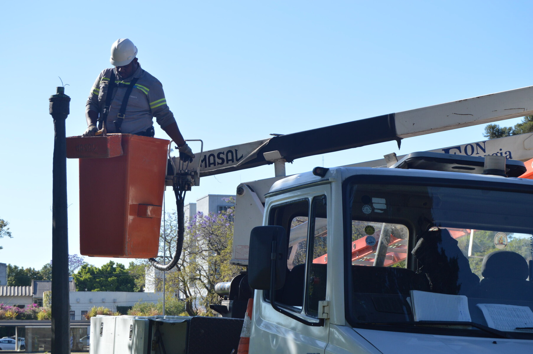 Desde a semana passada, uma equipe de servidores do setor de Iluminação Pública realiza reparos na fiação elétrica do Parque Internacional. Estão sendo restauradas as caixas de iluminação e a fiação completa de alguns postes. De acordo com o chefe de iluminação pública, Ailton Mello, o trabalho da equipe concentra-se no restabelecimento da segurança dos transeuntes, já que próximo aos postes de iluminação, encontravam-se fios energizados que apresentavam riscos a quem circulava pelo local. Com os reparos e as novas caixas, a fiação não ficará mais exposta, tampouco representará risco.