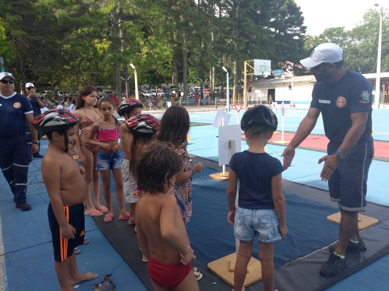 Na tarde de ontem (18), o setor de Educação, da Secretaria Municipal de Trânsito, Transporte e Mobilidade Urbana realizou mais uma ação educativa voltada às crianças. Na Sociedade Recreativa Santa Rita, os agentes de trânsito montaram a pista educativa. Com placas de sinalização de trânsito e orientações de comportamento, os agentes simularam o ambiente da rua, indicando ações voltadas a prevenção de acidentes.
