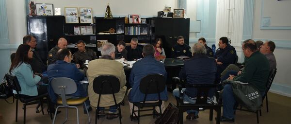Uma ampla reunião discutiu a questão do abigeato na fronteira, ontem (13), na Prefeitura Municipal. Contando com representações de Livramento e de Rivera, o encontro foi coordenado pelo prefeito Ico Charopen e acompanhado por representações da Secretaria de Agricultura, do Serviço de Inspeção Municipal (SIM), Vigilância Sanitária, Brigada Militar, Polícia Civil, Intendência Departamental de Rivera, Associação e Sindicato Rural, Ministerio de Ganaderia do Uruguai, Policia de Rivera e Polícia Rodoviária Federal.