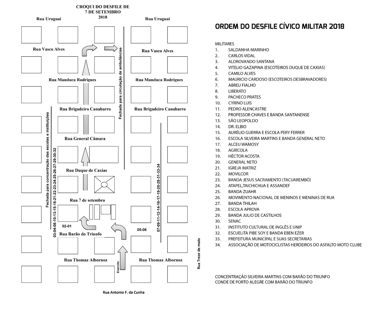 Confira a ordem e o croqui do Desfile Cívico Militar