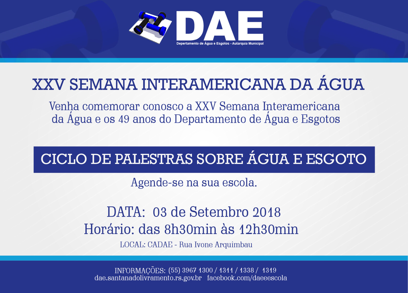 Amanhã (3) iniciam as atividades da XXV Semana Interamericana da Água, promovido pelo Departamento de Água e Esgotos (DAE).