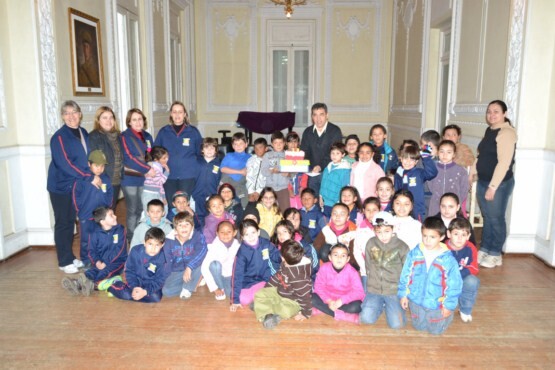 Os alunos do 1º e 2º ano da Escola Municipal de Ensino Fundamental Saldanha Marinho, no centro da cidade, encontraram uma forma alternativa e inusitada para homenagear a passagem dos 188 anos de Sant’Ana do Livramento. Acompanhados da diretora Niria Mendes e da sua vice-diretora, Neivsy Molinos, mais as professoras Carmen Silvia, Luciana Maia e Maria Elaine, os estudantes visitaram a Prefeitura e entregaram ao prefeito Wainer Machado, um bolo recheado com diversas cartas, escritas por colegas de 3ª e 4ª séries, que elencaram o que acreditam ser bom e ruim na cidade. Ao receber o carinho das crianças, Wainer ainda respondeu questionamentos sobre as responsabilidades de administrar o município, sem deixar de agradecer pela importância da visita, considerada emocionante pela simplicidade e originalidade da ideia. “É preciso acreditar que as coisas boas irão seguir acontecendo em nosso município, e respeitando o que as crianças enxergam no dia a dia. E estes jovens, hoje com seis, sete anos, estarão conquistando a maioridade em 2023, quando Sant’Ana fará 200 anos” – acrescentou. A aluna Ana Paula Machado Saldivia, seis anos, ainda fez questão de soprar um catavento movido a luz solar, considerado um símbolo da energia dos ventos em Sant’Ana